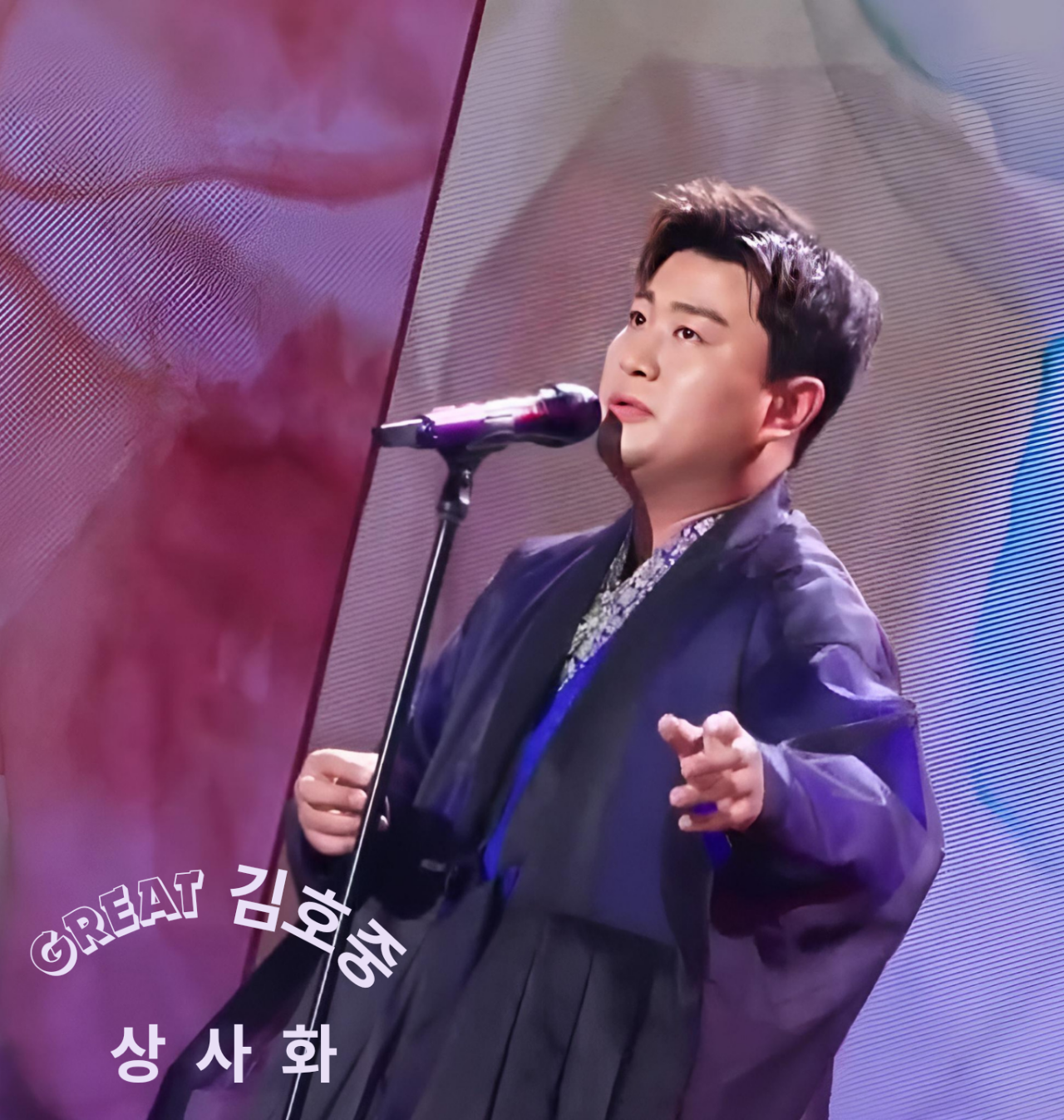 웅장하고도 화려한 스케일로 무대 위 열창하는 노래하는 사람 김호중 평소 많이 좋아하는 곡이 '상사화'