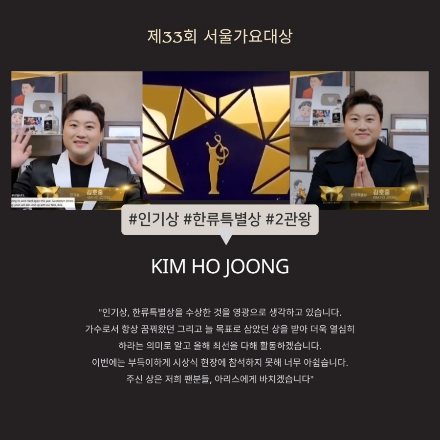 김호중 서울가요대상 인기상 한류특별상 수상! 2관왕 수상의 영예를 축하드립니다.