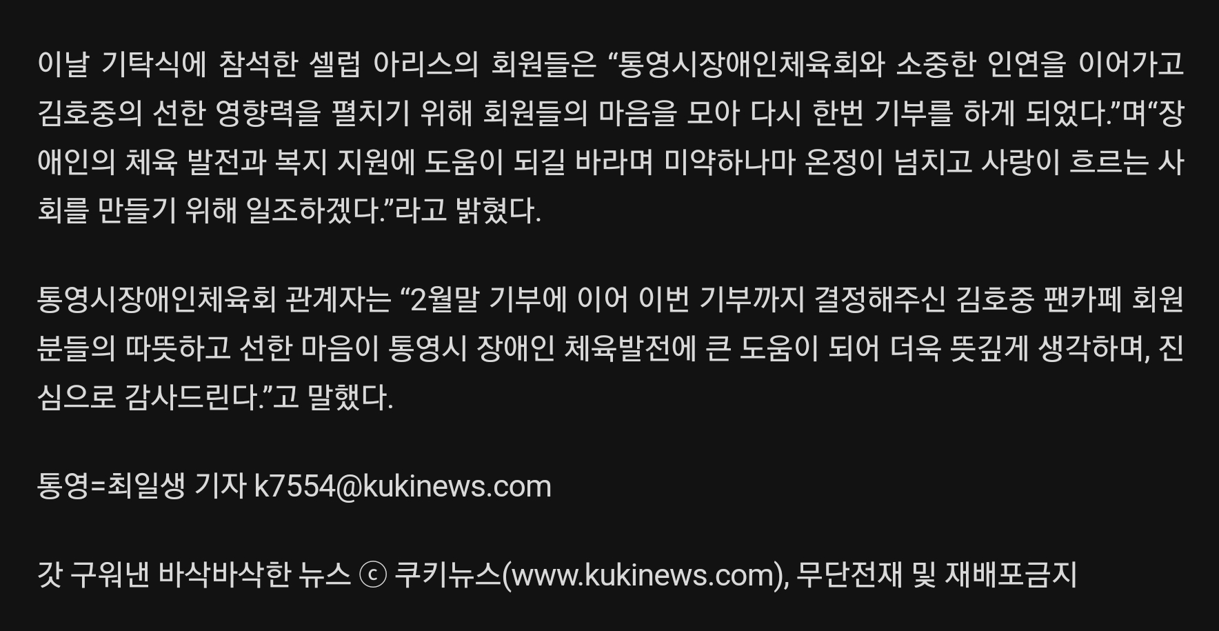 - #김호중_셀럽아리스_통영장애인체육회기부